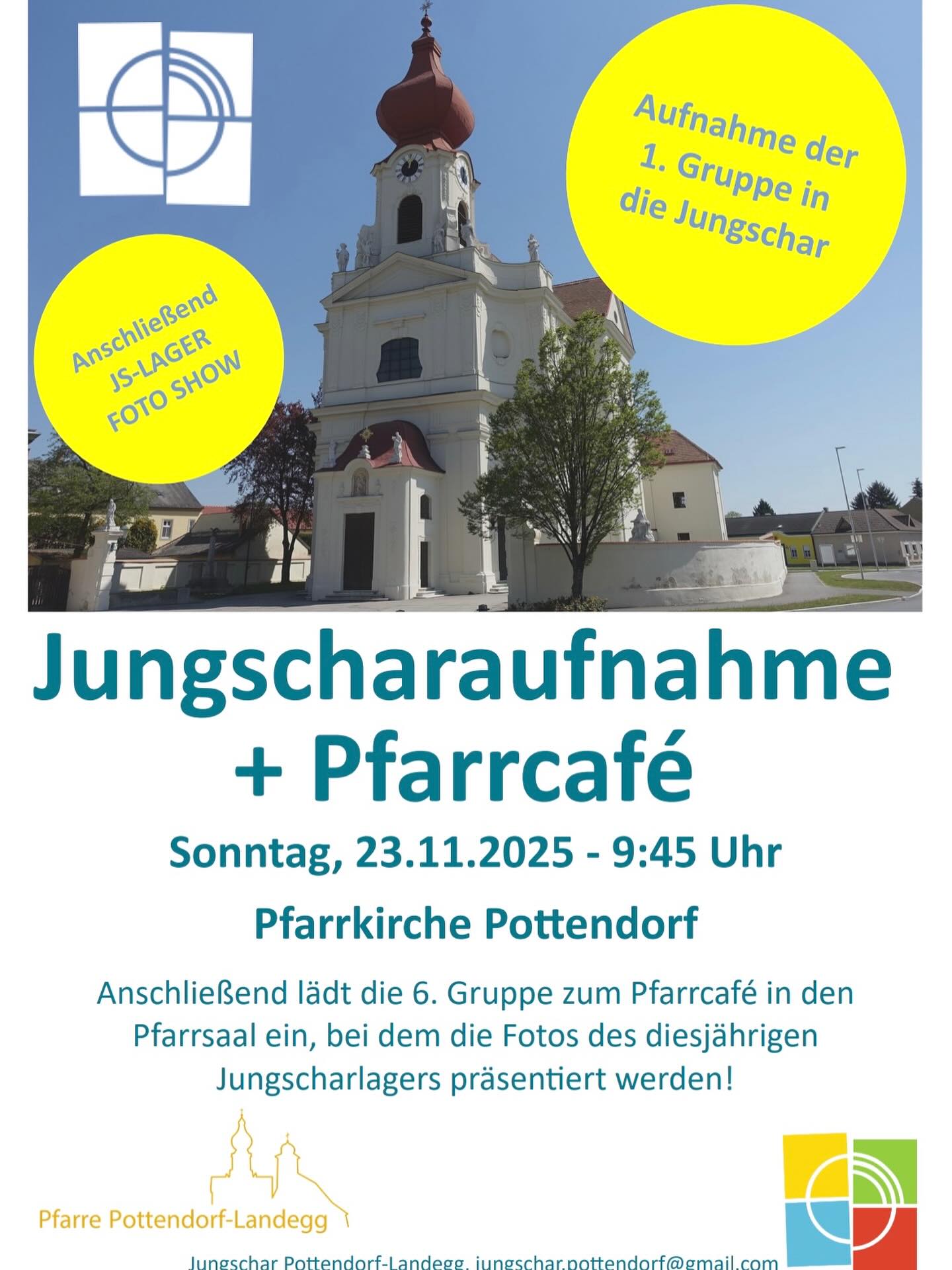 Herzliche Einladung zur Jungscharmesse mit feierlichen Aufnahme der Kinder der 1. Gruppe in die Jungschar am 23. November um 9.45 Uhr in der Pfarrkirche von Pottendorf.