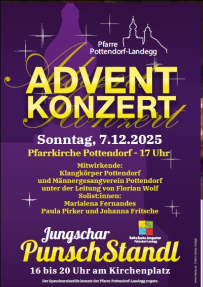 Herzliche Einladung zum Adventkonzert am 7. Dezember 2025 um 17 Uhr in unserer Pfarrkirche von Pottendorf.