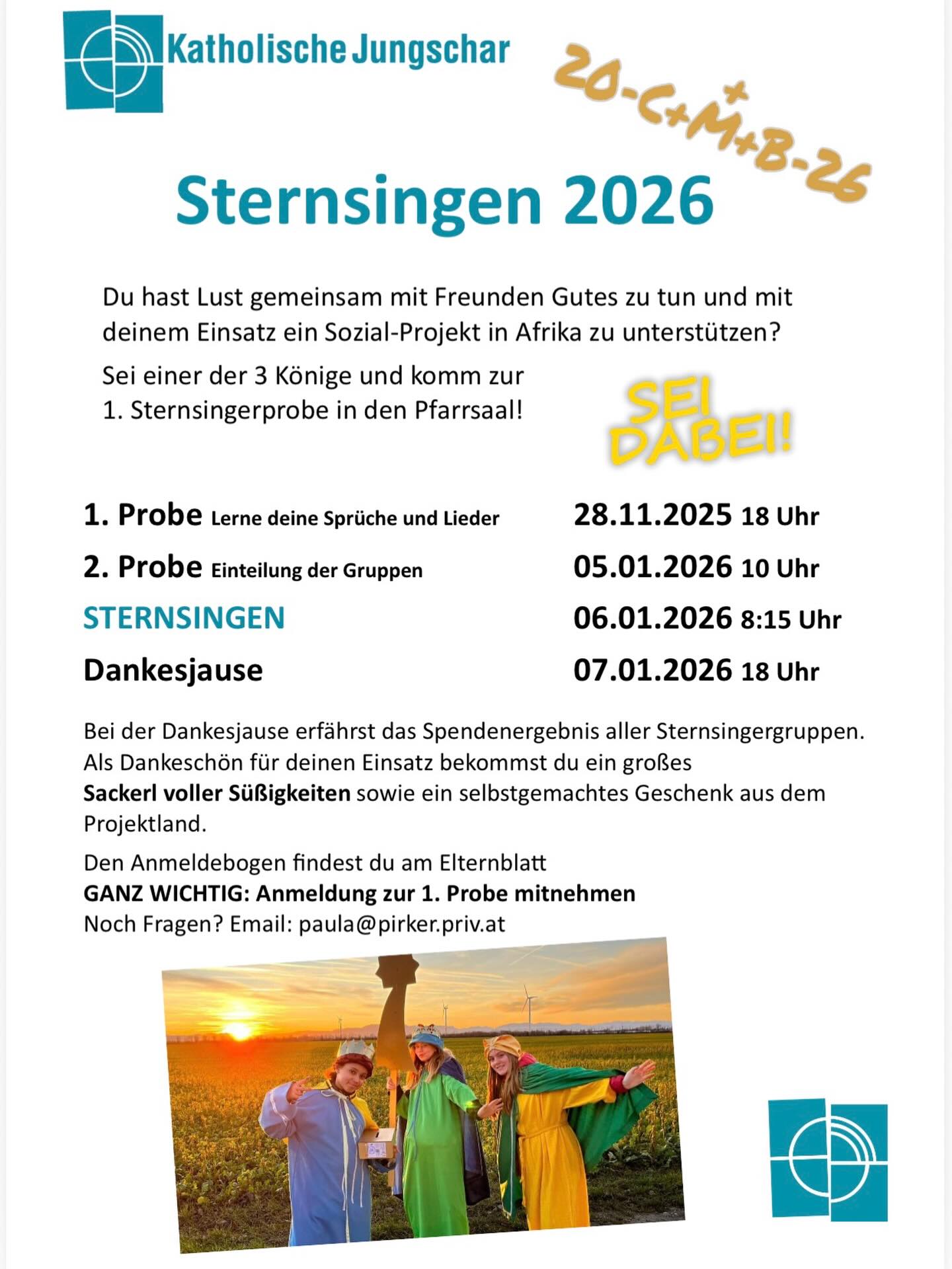 Für den 6. Jänner 2026 werden Sternsingerinnen und Sternsinger gesucht.