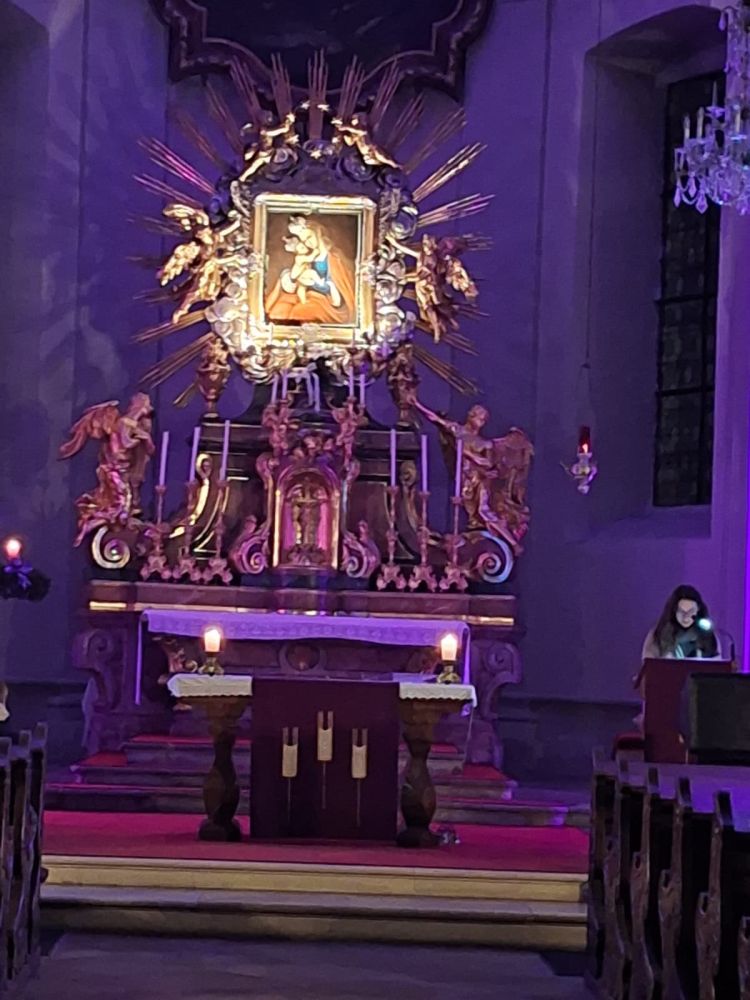 Außerdem machten wir uns gemeinsam auf den Weg in die Kirche: Wir erkundeten den Kirchenraum, entzündeten Weihrauch, und die Kinder durften sich gemeinsam mit ihren Bezugspersonen segnen - ein sehr berührender Moment.
